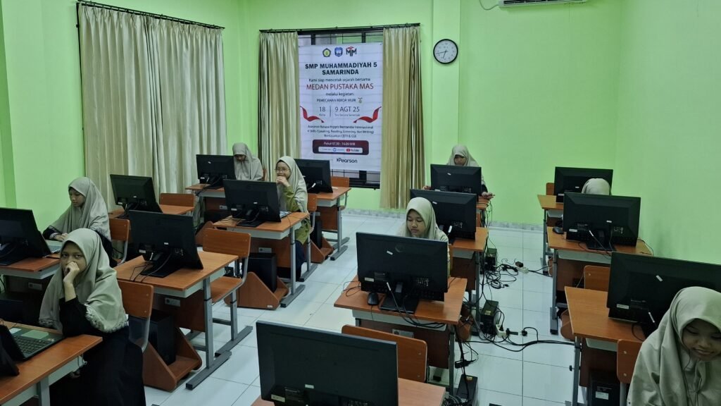 Samarinda – SMP Muhammadiyah 5 Samarinda turut ambil bagian dalam pemecahan Rekor MURI untuk asesmen bahasa Inggris berstandar internasional yang menguji empat keterampilan utama, yaitu speaking, reading, listening, dan writing. Asesmen ini mengacu pada standar Common European Framework of Reference for Languages (CEFR) dan Global Scale of English (GSE).