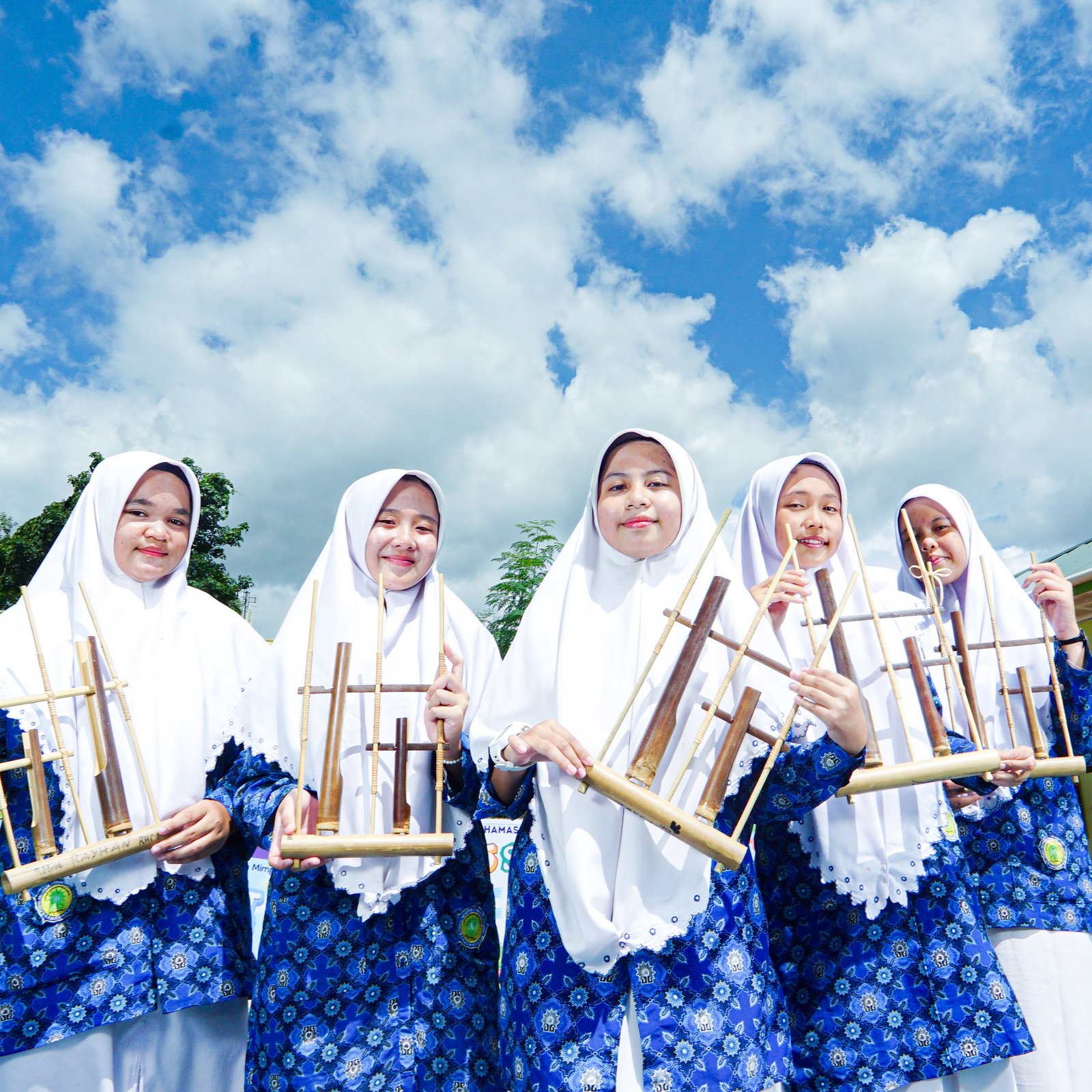 Belajar memainkan alat musik bambu secara bersama-sama, melatih kekompakan, rasa seni, dan cinta budaya Indonesia.